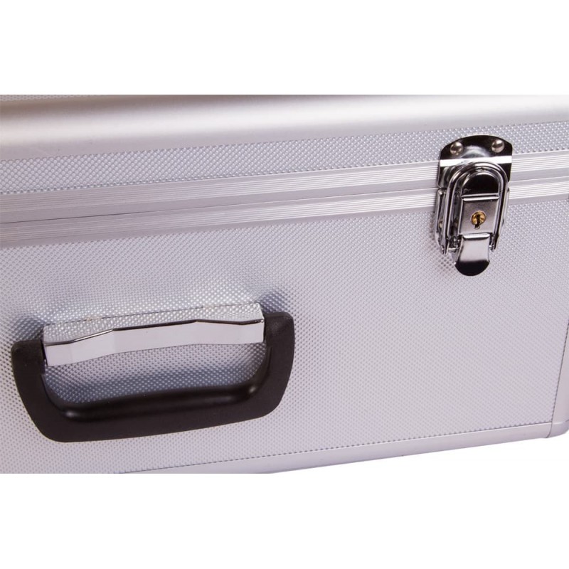 Данная модель изготовлена из прочного алюминия. Для удобной транспортировки кейс снабжен ручкой.