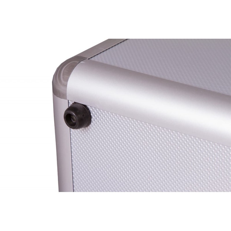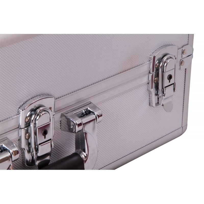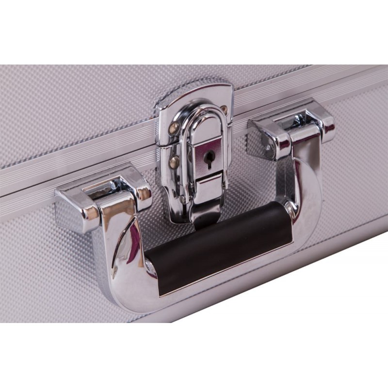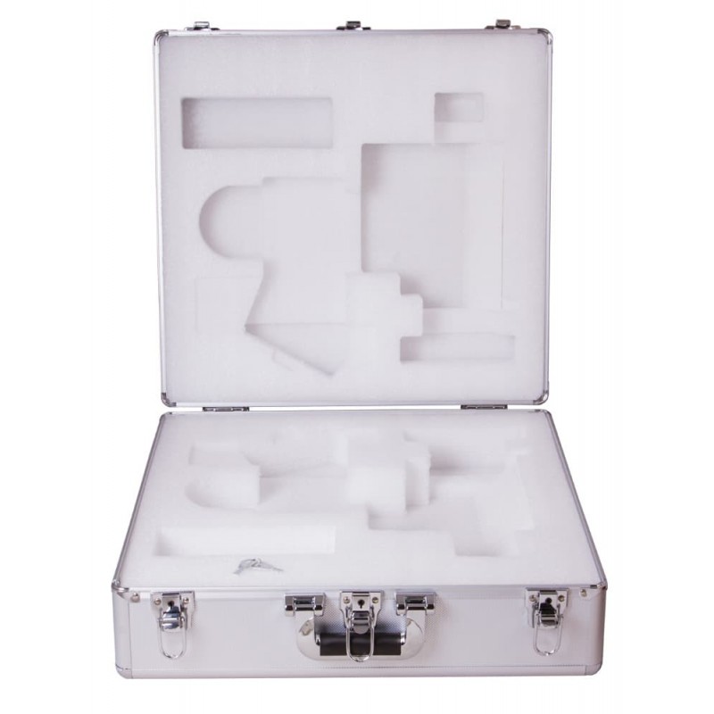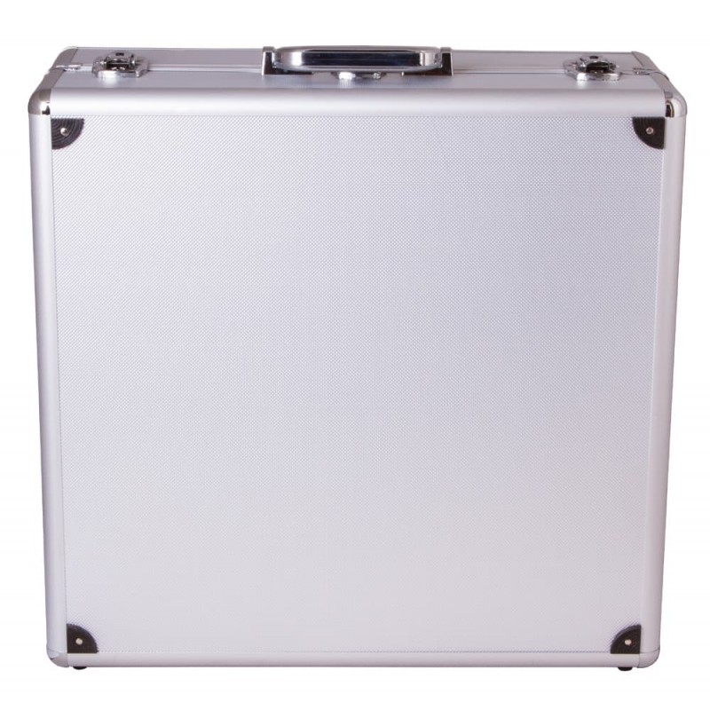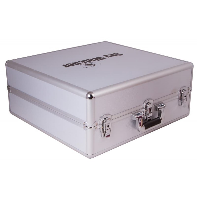 Кейс защищает монтировку от неблагоприятных внешних условий, например грязи или пыли. Эта модель изготовлена из легкого и прочного алюминия. Кейс снабжен ручкой для переноски.