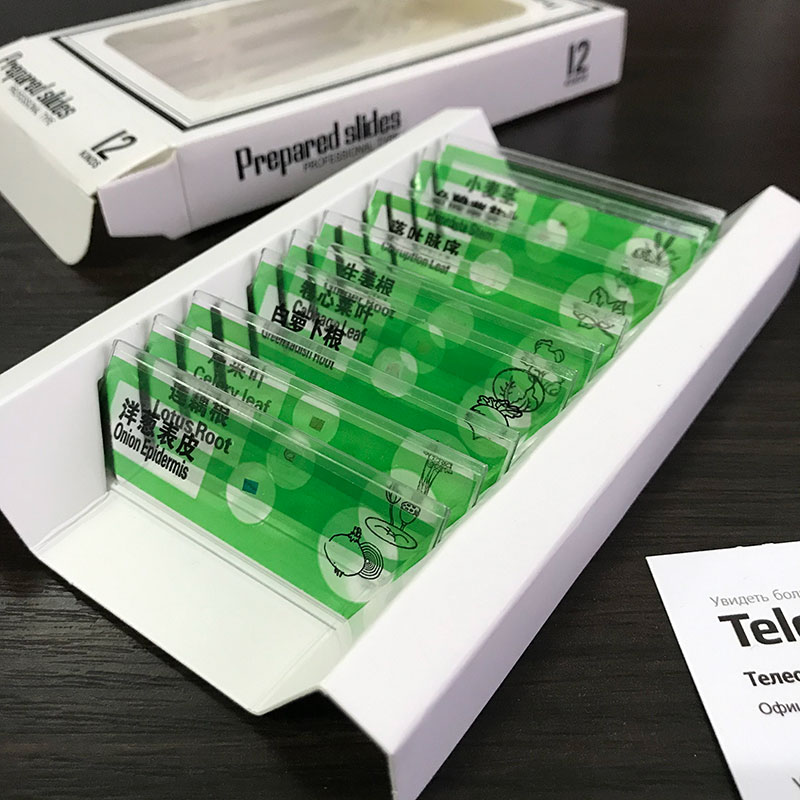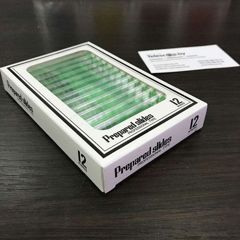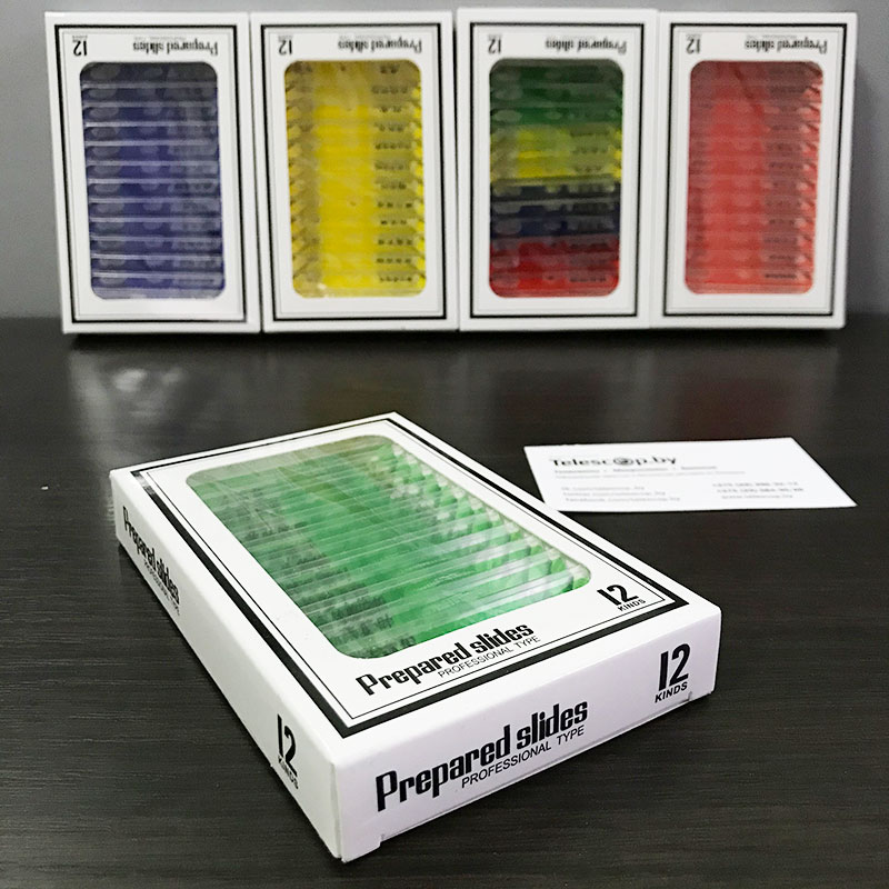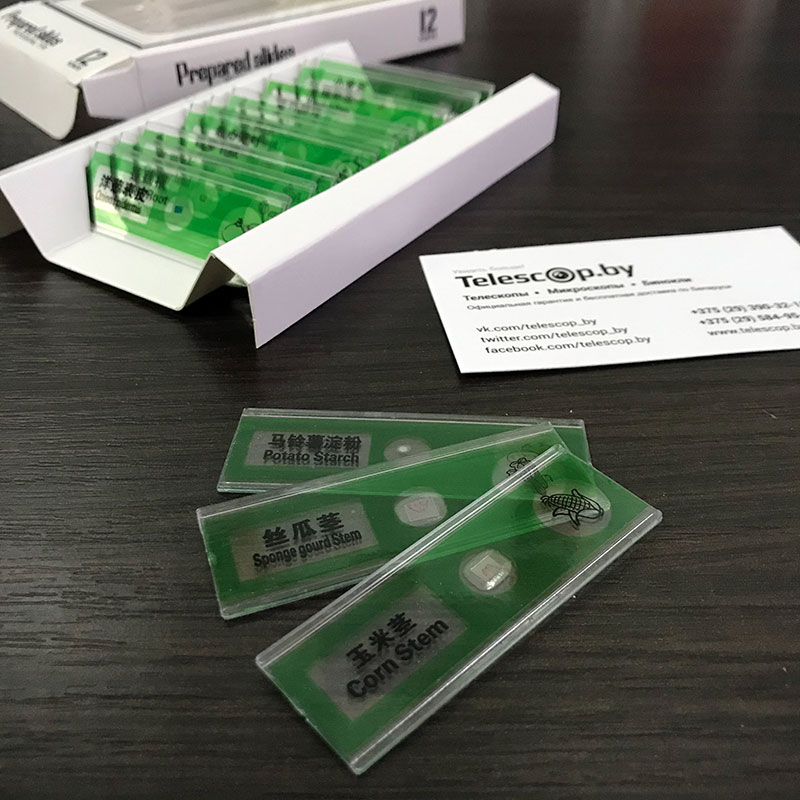 Все образцы расположены на «стеклышках» из современного оптического пластика. В отличие от обычных предметных стекол с острыми краями, наши образцы имею плавные и полностью безопасные края о которые невозможно пораниться. Ведь безопасность — это главное при создании предметов которыми могут пользоваться, в том числе, и дети!
