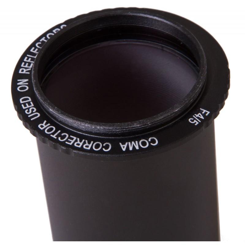 Данный аксессуар устанавливается в фокусировочный узел. Корректор исправляет кому рефлекторов Ньютона, благодаря чему изображения звезд не искажаются. Эта модель имеет широкое поле зрения, картинка получается четкой и в центре, и на периферии.