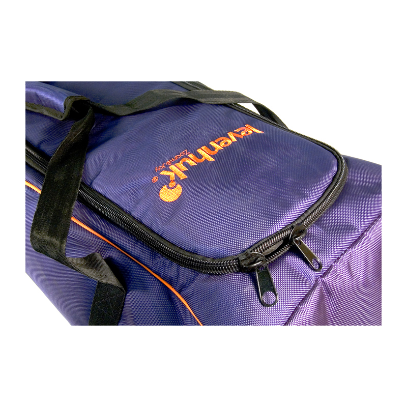 Сумка изготовлена из прочного нейлона. Внутри есть отделения, в которых помещается труба, и отдельно штатив с монтировкой. Всё это закрепляется ремешками, чтобы элементы не бились друг о друга. Таким образом, вы никогда не повредите части телескопа.