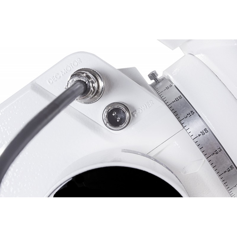 При визуальных наблюдениях оптическая труба устанавливается в азимутальном режиме, а для астрофотосъемки телескоп необходимо перевести в экваториальный режим. На корпусе монтировки предусмотрены три порта: порт стандарта ST-4 для автогида (автогид в комплект не входит), порт стандарта DSLR для управления спуском затвора цифровых фотокамер и USB-порт для подключения к компьютеру.