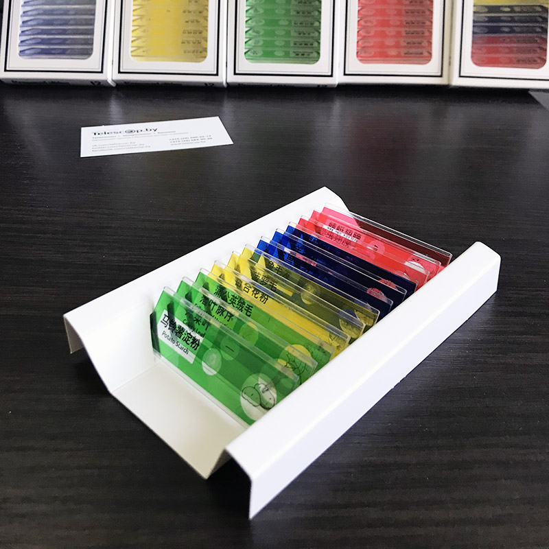 Все образцы расположены на «стеклышках» из современного оптического пластика. В отличие от обычных предметных стекол с острыми краями, наши образцы имею плавные и полностью безопасные края о которые невозможно пораниться. Ведь безопасность - это главное при создании предметов которыми могут пользоваться, в том числе, и дети!