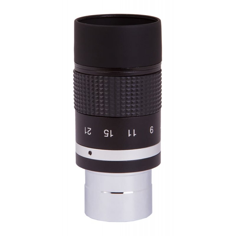 Sky-Watcher Zoom 7–21 мм — это окуляр с переменной кратностью. Данная модель универсальна и может заменить собой несколько окуляров с постоянным фокусным расстоянием. Благодаря продуманной конструкции при смене кратности фокусировка не сбивается. Однако стоит учитывать, что поле зрения zoom-окуляров всегда меньше, а светосила ниже, чем в фиксированных окулярах.