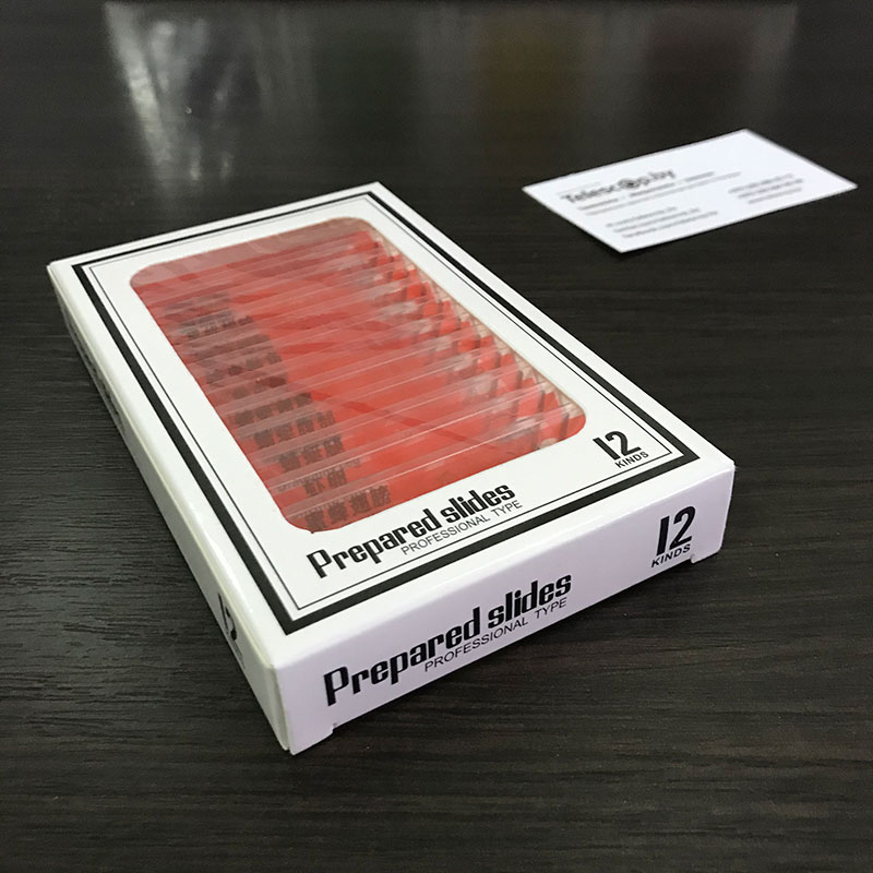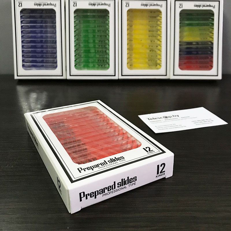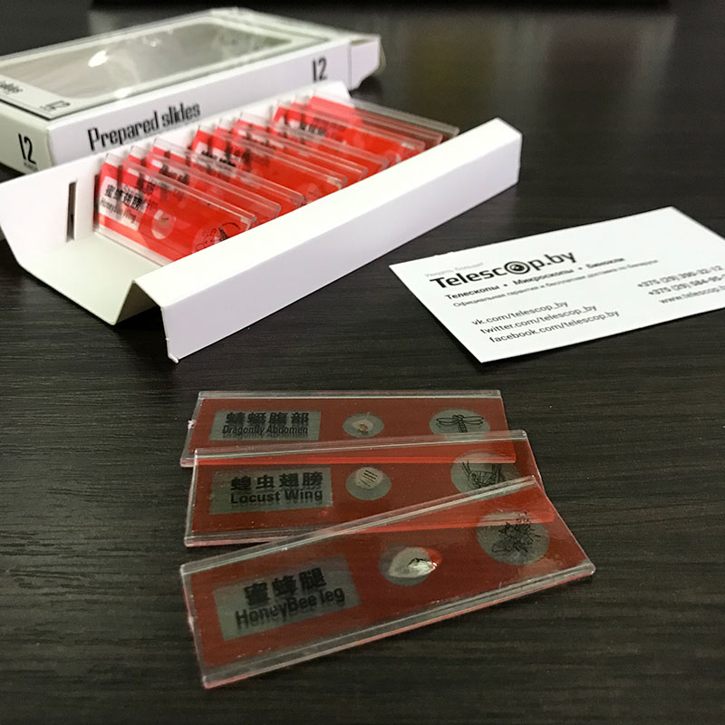 Все образцы расположены на «стеклышках» из современного оптического пластика. В отличие от обычных предметных стекол с острыми краями, наши образцы имею плавные и полностью безопасные края о которые невозможно пораниться. Ведь безопасность — это главное при создании предметов которыми могут пользоваться, в том числе, и дети!