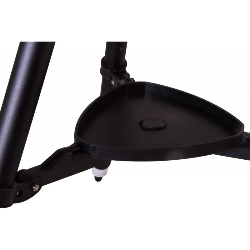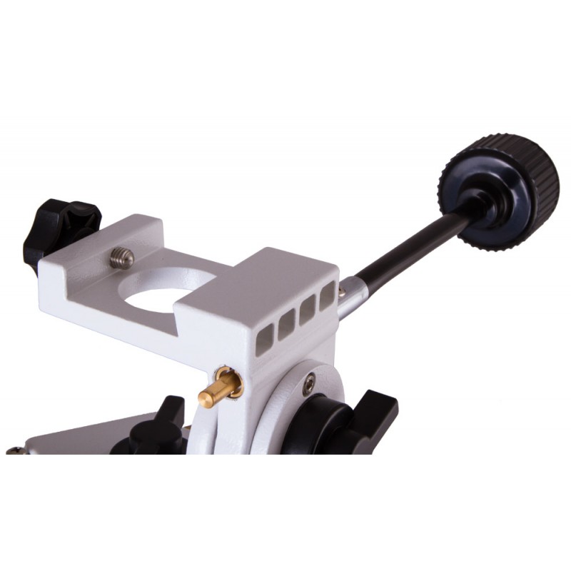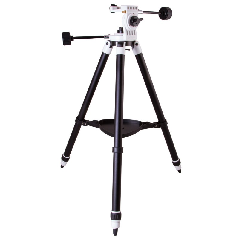 Монтировка подойдет для установки негабаритных и легких оптических труб с креплением «ласточкин хвост». Во время наведения вы не будете ощущать колебаний и люфта – все фиксируется очень надежно. Монтировка комплектуется устойчивой треногой из алюминия, которая имеет регулировку высоты. На одной из опор треноги расположен пузырьковый уровень, который поможет сориентировать телескоп перед началом наблюдений.