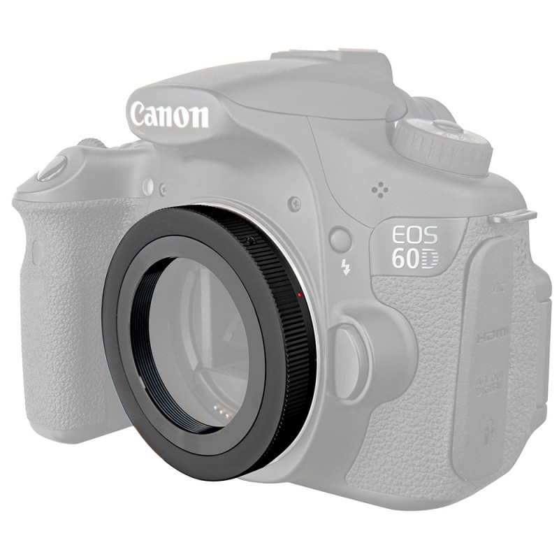 Это Т-кольцо предназначено для камер Canon EOS. С помощью соответствующего Т-адаптера оно может использоваться для присоединения камеры к любому телескопу с фокусером стандарта 1,25” или 2”.