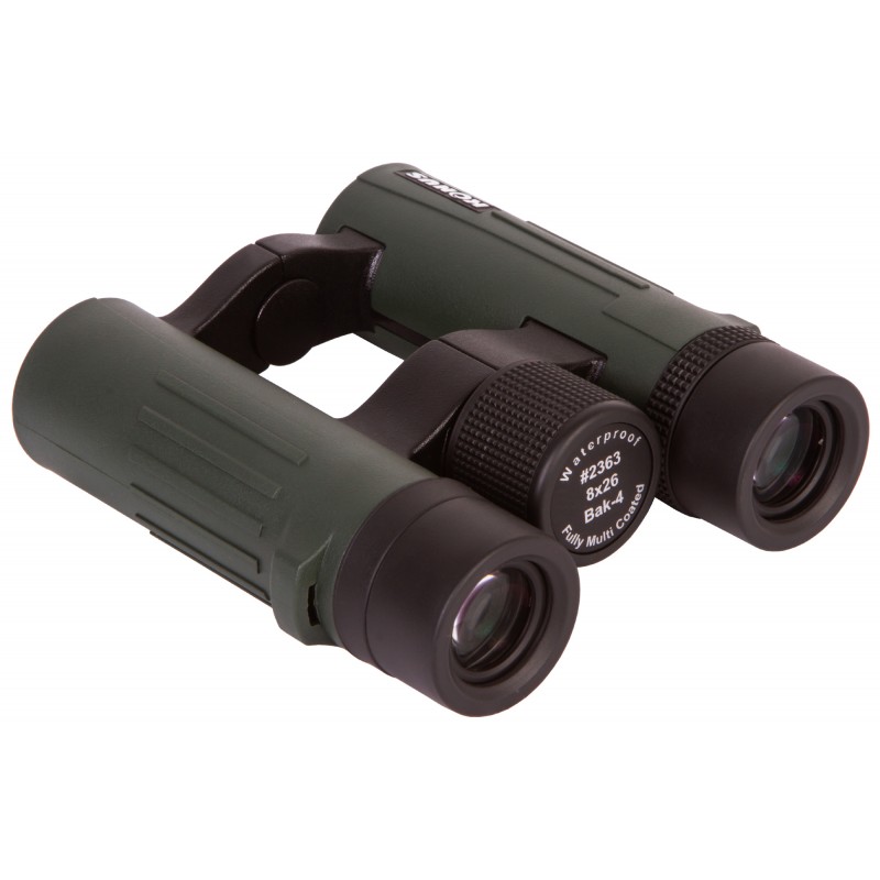 Оптическая схема – roof-призмы и линзы из стекла BaK-4. Все элементы многократно просветлены, поэтому оптика создает очень яркое и ясное изображение. Увеличение составляет 8 крат, поля зрения хватает, чтобы с комфортом наблюдать за движущимися объектами. Корпус герметичен, т. е. не боится дождя и кратковременного погружения под воду.