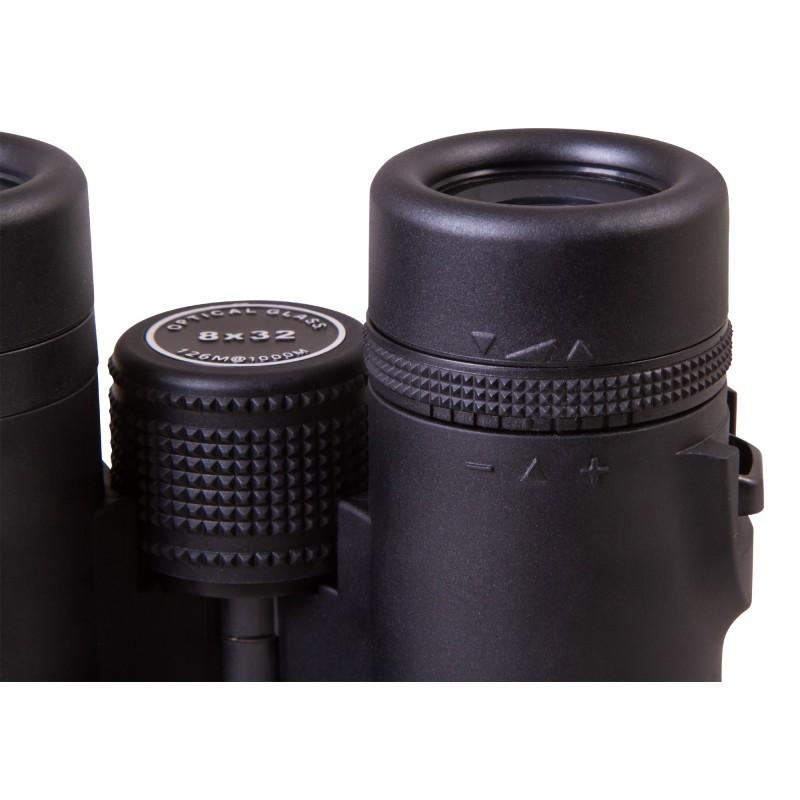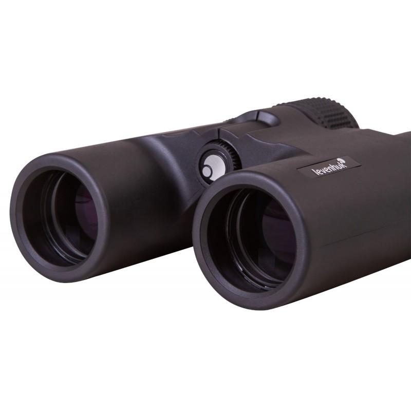 Призмы и линзы сделаны из стекла BK-7. Оптика защищена многослойным просветлением, которое увеличивает яркость и контрастность передаваемой картинки. Поле зрения широкое, поэтому с помощью бинокля удобно наблюдать за группами людей или животных. Кроме того, у окуляров увеличенный вынос зрачка и поворотно-выдвижные наглазники. Резкость настраивается при помощи центрального барабана фокусировки, дополнительная регулировка выполняется кольцом диоптрийной коррекции.