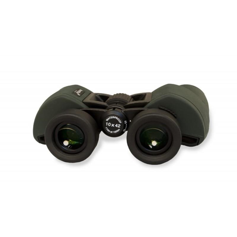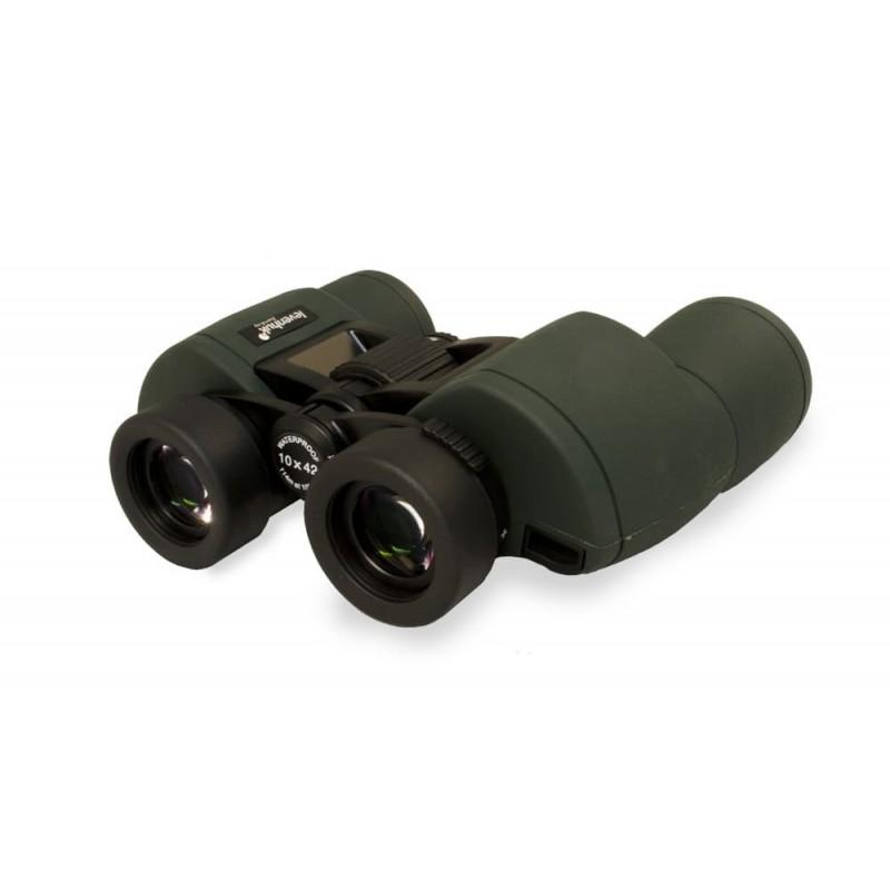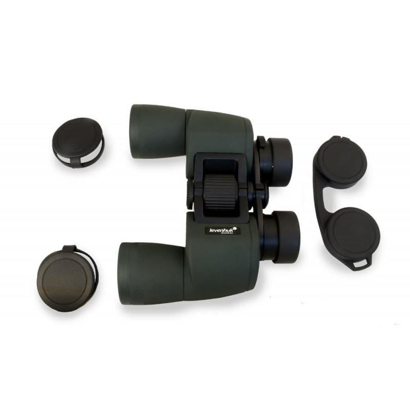 Бинокль изготовлен в надежном герметичном корпусе, который не пропускает грязь, пыль и влагу. Благодаря текстурной темно-зеленой резиновой оболочке прибор удобно держать в руках. Бинокль можно повесить на шею – в комплект входит широкий ремешок. На корпусе имеется крепление под штатив.