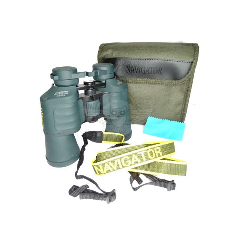 Особенностью модели является оптика из высококачественного стекла с рубиновым просветляющим покрытием, которое делает картину максимально качественной и яркой даже в сумерках. Navigator 16х50 имеет центральную фокусировку. Также бинокль снабжен диоптрийной коррекцией на правом окуляре. Наблюдатели с отклонениями от норм зрения, имеют возможность настройки прибора в диапазоне ±4 D. Обрезиненный корпус является дополнительной защитой от несильных механических повреждений, грязи и пыли.