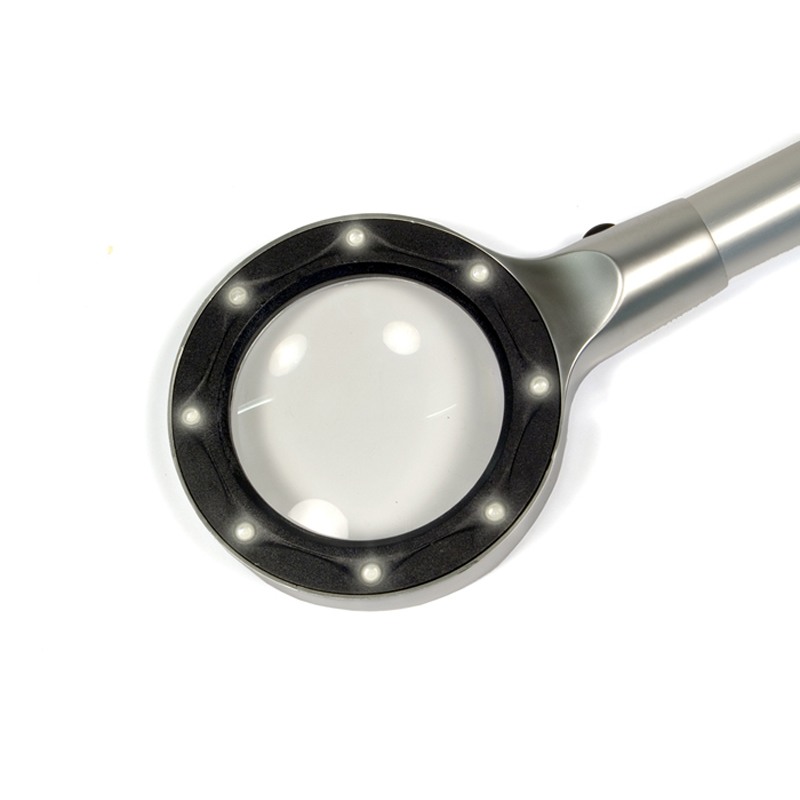 Модель оборудована встроенной подсветкой из 8 светодиодов, которые размещены в корпусе лупы по кругу, что обеспечивает равномерное освещение всей рабочей поверхности. Белый свет светодиодов не режет глаза и приятен при долгой работе. Малое энергопотребление светодиодов позволит вам долгое время не менять батарейки.