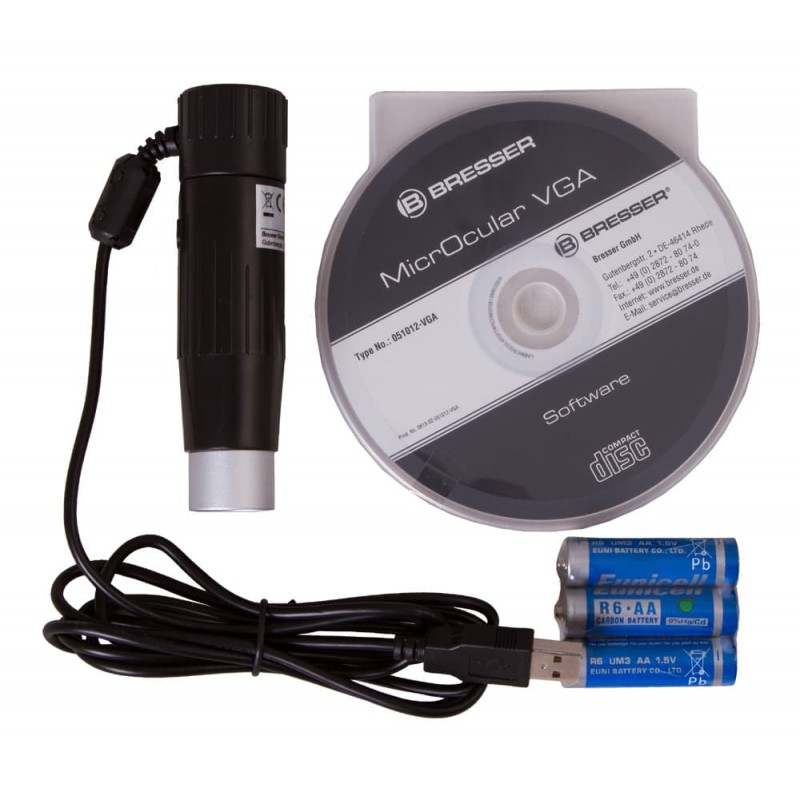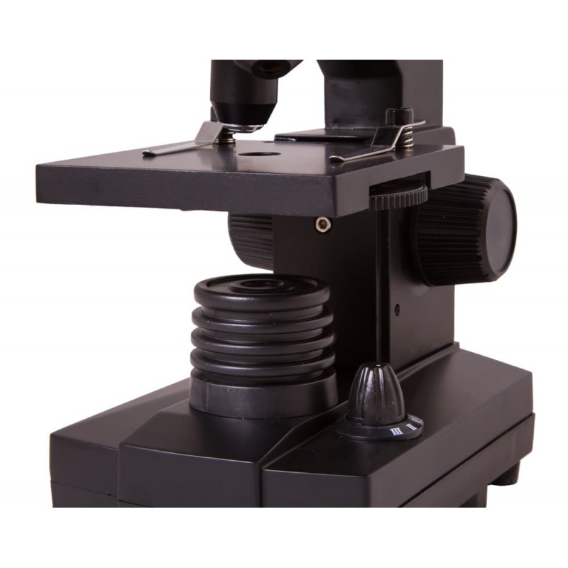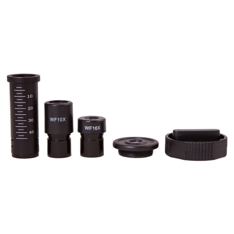 Микроскоп снабжен револьверным устройством на три объектива. Используя прилагающиеся оптические аксессуары, можно достичь максимального увеличения в 1024 крат. Кроме двух стандартных окуляров в комплекте идет видеоокуляр, с помощью которого можно выводить изображение исследуемого образца на экран компьютера, ноутбука или телевизора. Для работы USB-окуляра потребуется установить специальное программное обеспечение (в комплекте).
