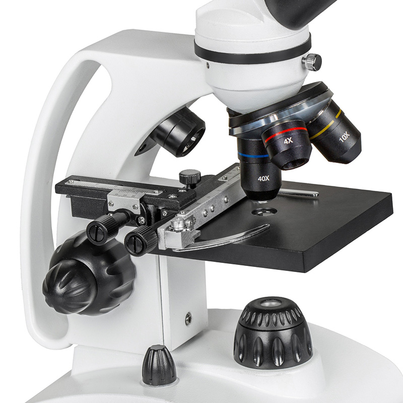 - Корпус микроскопа изготовлен из металла. Надежный и прочный, с удобной встроенной ручкой для переноски. Три ахроматических стеклянных объектива дают увеличение до 400x. Дополнительно докупив 16х окуляр, вы получите максимальное увеличение микроскопа до 640х!