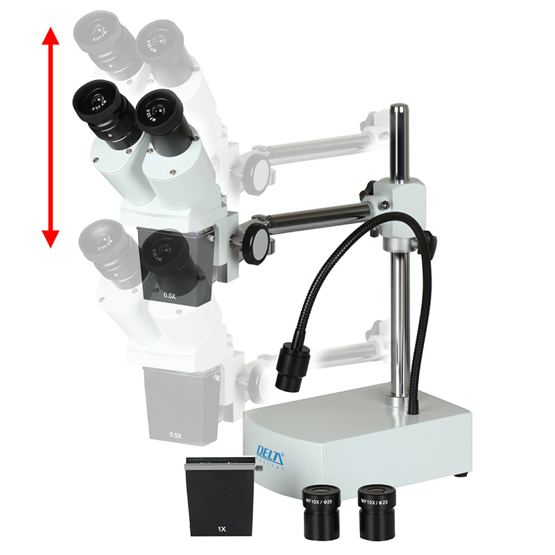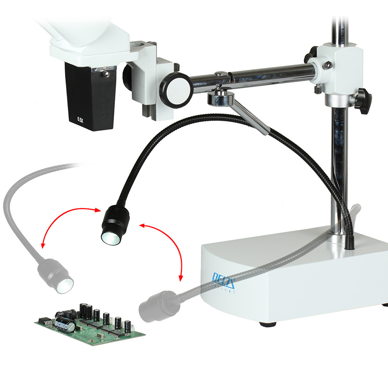 Микроскоп Delta Optical Discovery L предназначен для профессионального использования на производстве, при контроле качества и других задач, для которых необходимо небольшое увеличение, но высокая мобильность микроскопа. Благодаря длинной выдвижной штанге можно исследовать большие площади поверхности объекта без необходимости двигать его или базу микроскопа. Доступно только одно увеличение - 10х, оно позволяет наблюдать мелкие, непрозрачные объекты, например: печатные платы, поверхности, насекомых, растения, минералы, монеты, марки и т.д. Микроскоп используется для наблюдений в отраженном свете. Для этого, вы можете использовать естественный свет или, предпочтительно, лампу подсветки на "гусиной шее". Это позволяет точно контролировать угол падения и яркость света.