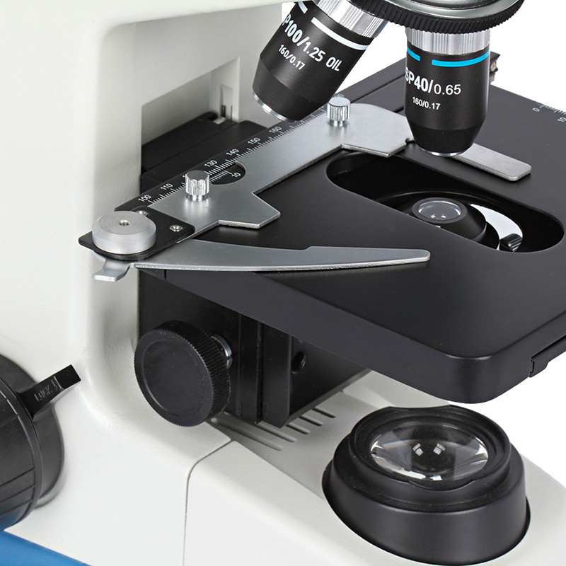 Микроскоп оснащен конденсором Аббе NA=1,25 с ирисовой диафрагмой и предназначен для изучения образцов по методу светлого поля. При необходимости, он может быть дополнительно модифицирован для исследований по методу темного поля.
