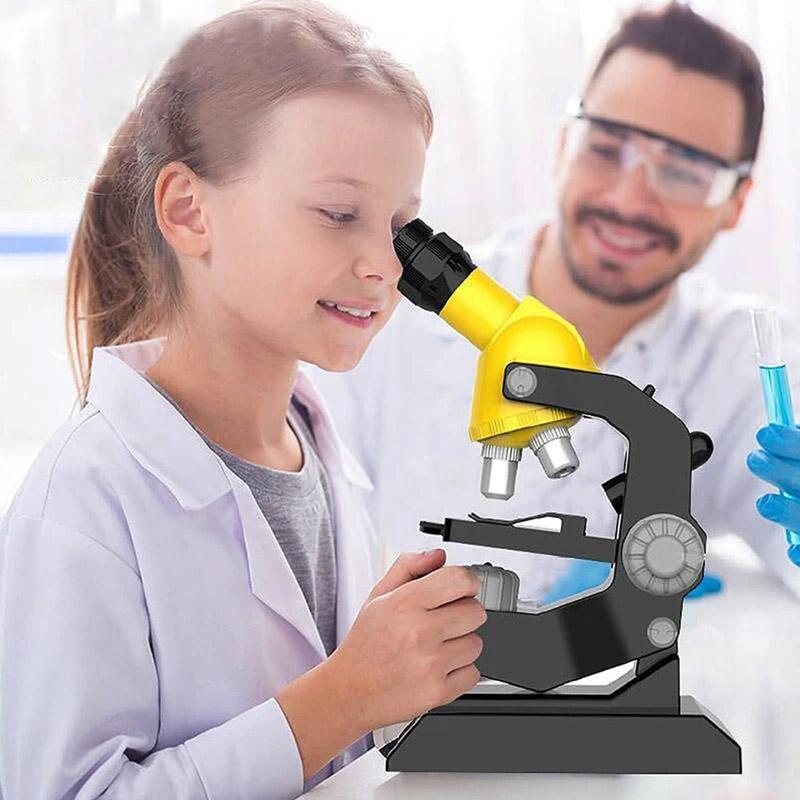 В основании микроскопа есть удобная выдвижная полочка, в которой вы можете хранить стеклышки. Корпус микроскопа сделан из современного пластика. Стильное сочетание желтого и черного цвета красиво впишется в любой интерьер.