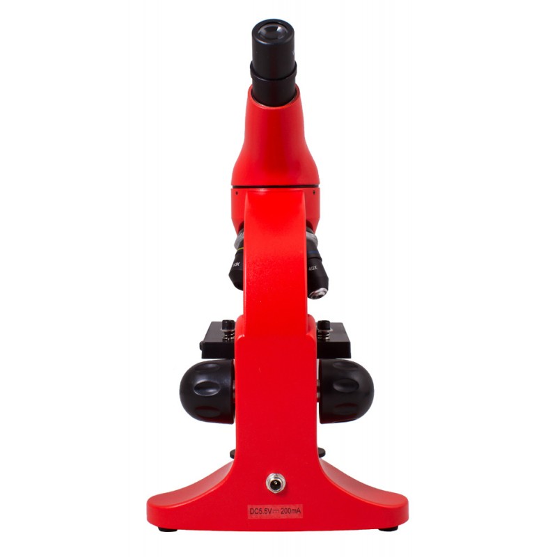 Основная деталь микроскопа — три объектива: 4x, 10x, 40x, кратность меняется поворотом револьверного устройства. Линза Барлоу в комплекте прибора удваивает увеличение каждого объектива до 80, 200 и 800 раз соответственно. Оптика, изготовленная из стекла с многослойным осветляющем покрытием на линзах, обеспечивающих лучшее пропускание света и создающая четкое изображение.