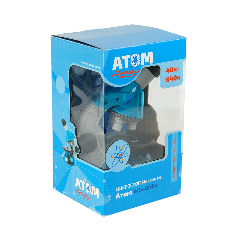 Микроскоп Микромед Атом 40—640х (Лазурь) — это классный способ увлечь ребенка чем-то интересным и полезным!