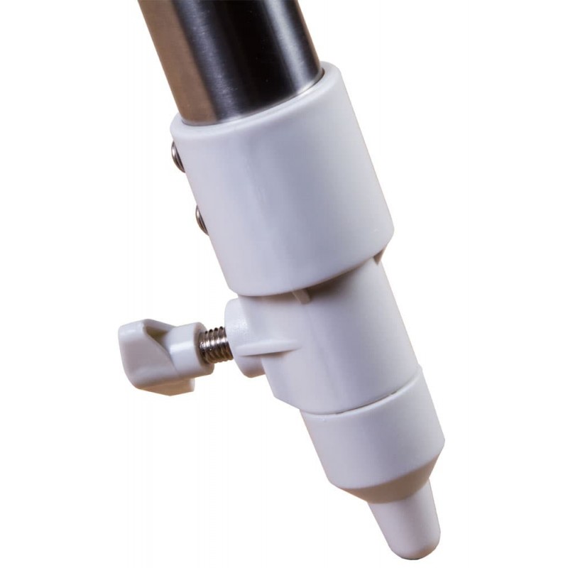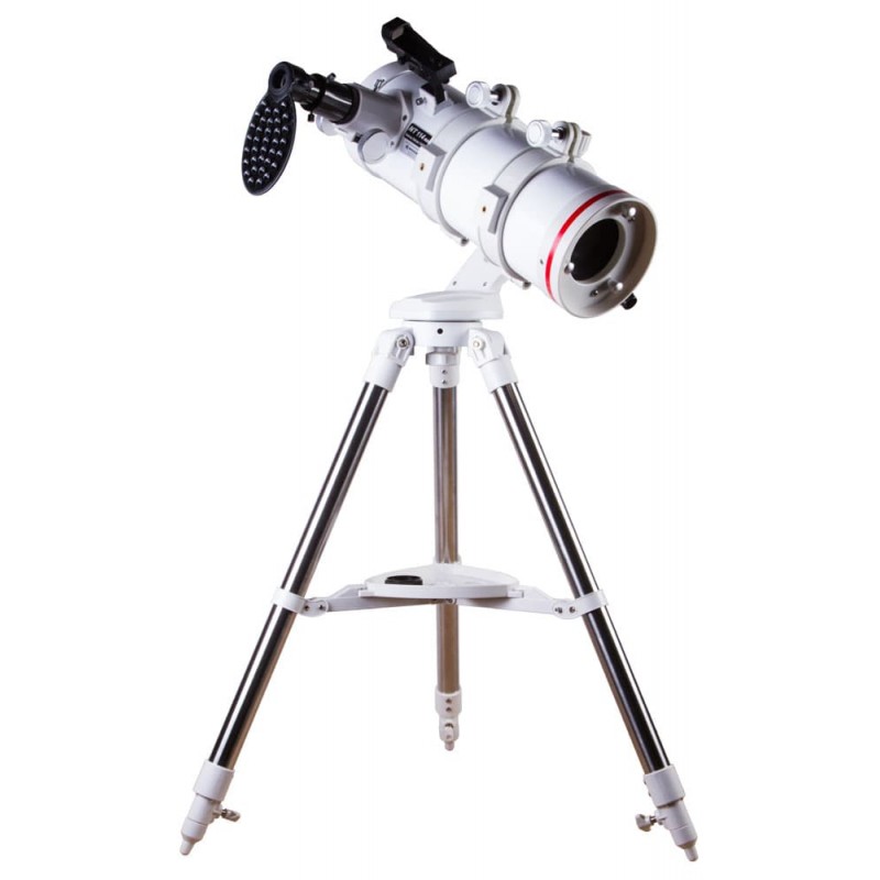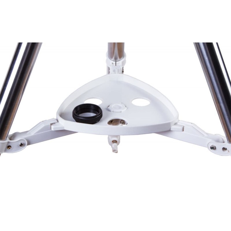 Оптическая труба установлена на одноперьевую азимутальную монтировку NANO AZ. Она идеально подходит для небольших и легких телескопов и не вызывает затруднений даже у начинающих астрономов. Монтировка управляется вручную. Базовую сборку дополняет надежная стальная тренога. Высоту ее ножек можно регулировать, есть лоток для аксессуаров.