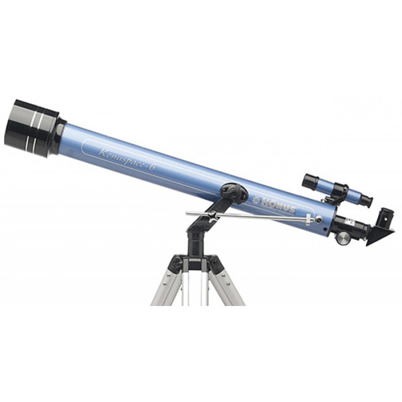 KONUS KONUSPACE-6 60/800 AZ — рефрактор начального уровня для космических и наземных наблюдений. Имеет прочный металлический корпус трубы. Объектив имеет диаметр 60 мм, фокусное расстояние составляет 800 мм, светосила 1/13.33. В комплекте идут два окуляра H8 мм и H20 мм, которые обеспечат возможности увеличения до 120 крат сразу после распаковки.