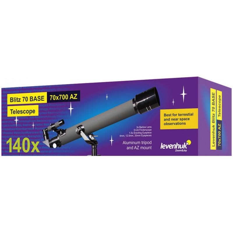 Телескоп Levenhuk Blitz 70 BASE станет отличным помощником в изучении космоса. С одной стороны, им достаточно легко управлять, с другой – он предоставляет доступ к широкому спектру астрономических наблюдений. Благодаря апертуре в 70 мм телескоп способен показать Луну в деталях, планеты земной группы и газовые гиганты. Также он может работать по наземным ландшафтам как мощная зрительная труба.