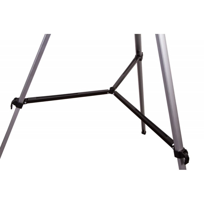 Телескоп установлен на простую азимутальную монтировку. Ею очень просто управлять – ребенок справится с ней без особых усилий. Тренога, удерживающая телескоп, изготовлена из алюминия. Высота ножек треноги регулируется.
