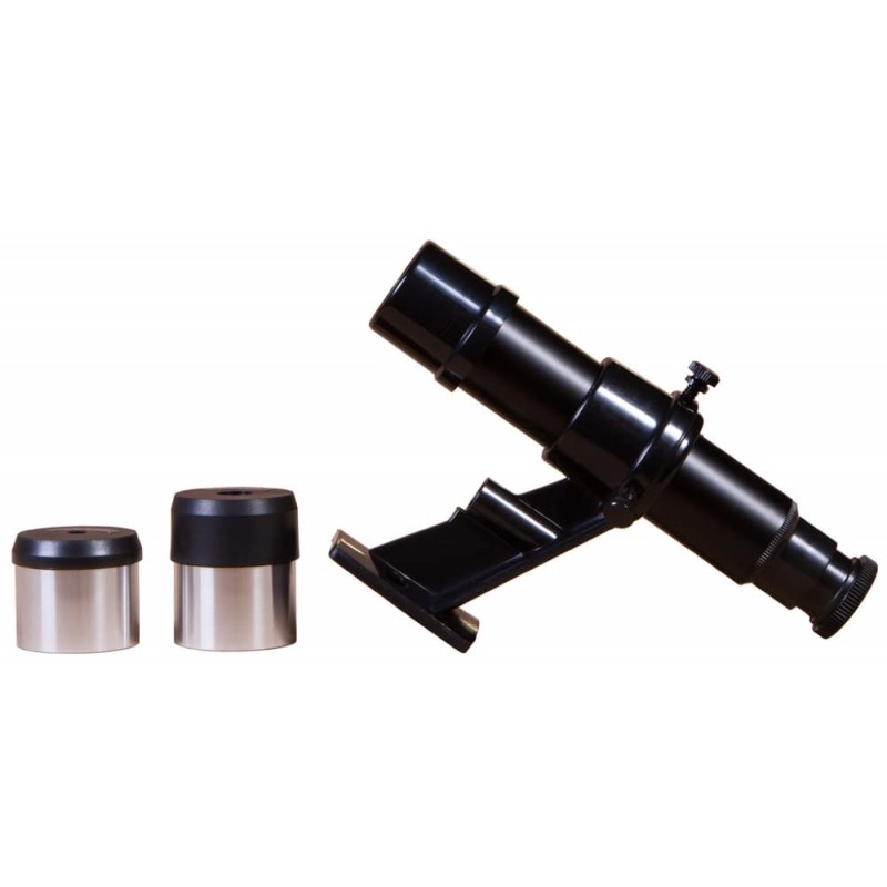 Наводиться на объекты проще через оптический искатель 5x24, установленный на основную трубу. Сама труба крепится к лёгкой и удобной азимутальной монтировке AZ2. Тренога сделана из алюминия. Он складная, так что её удобно переносить. Также можно регулировать высоту, а для дополнительных инструментов и аксессуаров на треноге установлен специальный удобный лоток.