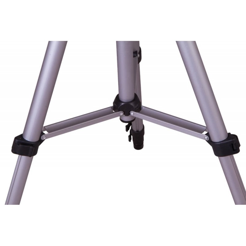 Телескоп Levenhuk Skyline Travel Sun 50 установлен на компактную и надежную азимутальную монтировку. Она очень проста в управлении, а со сборкой телескопа справится даже ребенок. Еще один плюс такой монтировки – малый вес. Для ведения телескопа есть удобная ручка. Монтировка крепится на алюминиевую треногу, ее высота регулируется от 40 до 125 см.