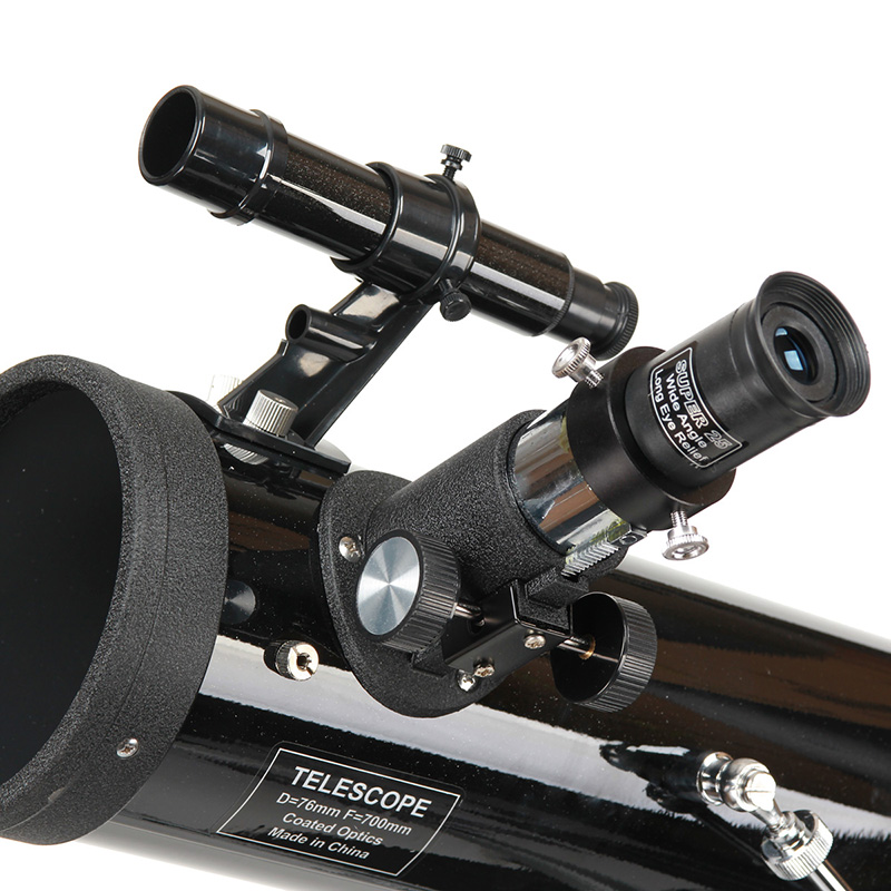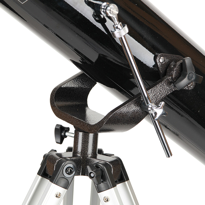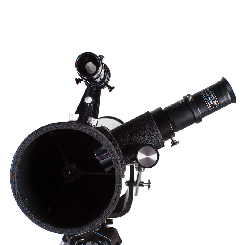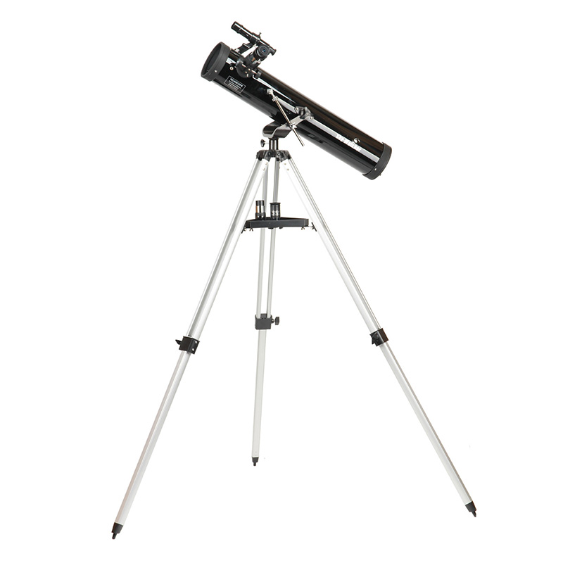 Удачная модель в сочетании цены, оптики и простоты использования. Неплохое 76мм зеркало собирает достаточно света, чтобы вы с интересом могли рассматривать кратеры и горы на Луне, а также крупные планеты. Благодаря малому весу, телескоп устойчиво (по сравнению с другими зеркальными моделями) стоит на своих трех ногах. Высота штатива регулируется. Простая азимутальная монтировка интуитивно понятная и с наведением телескопа справится даже ребенок.