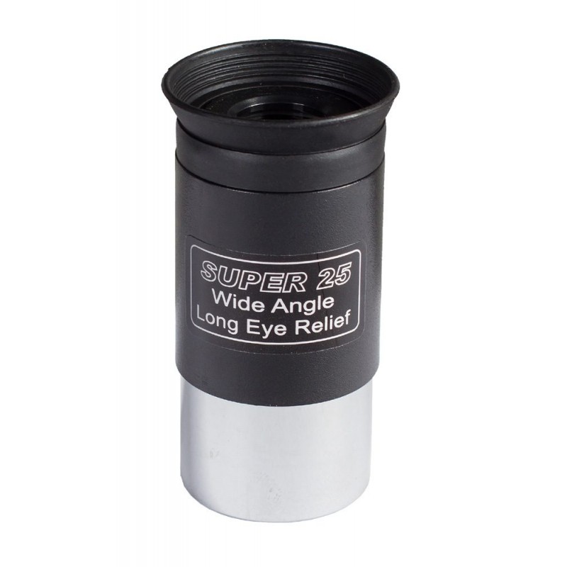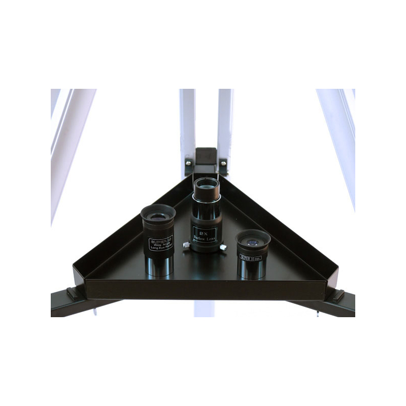 В комплекте с телескопом вы найдете удобный предметный столик для аксессуаров, два окуляра 25мм и 10мм, которые дают увеличение 36 крат и 90 крат. Рекомендуем докупить линзу Барлоу 2х, которая работает как переходник и удваивает увеличение окуляров, таким образом вы получите 72х и 180х. А чтобы выжать максимум, рекомендуем широкоугольный окуляр 4мм, который даст 225 крат без потери качества и на широком угле обзора!