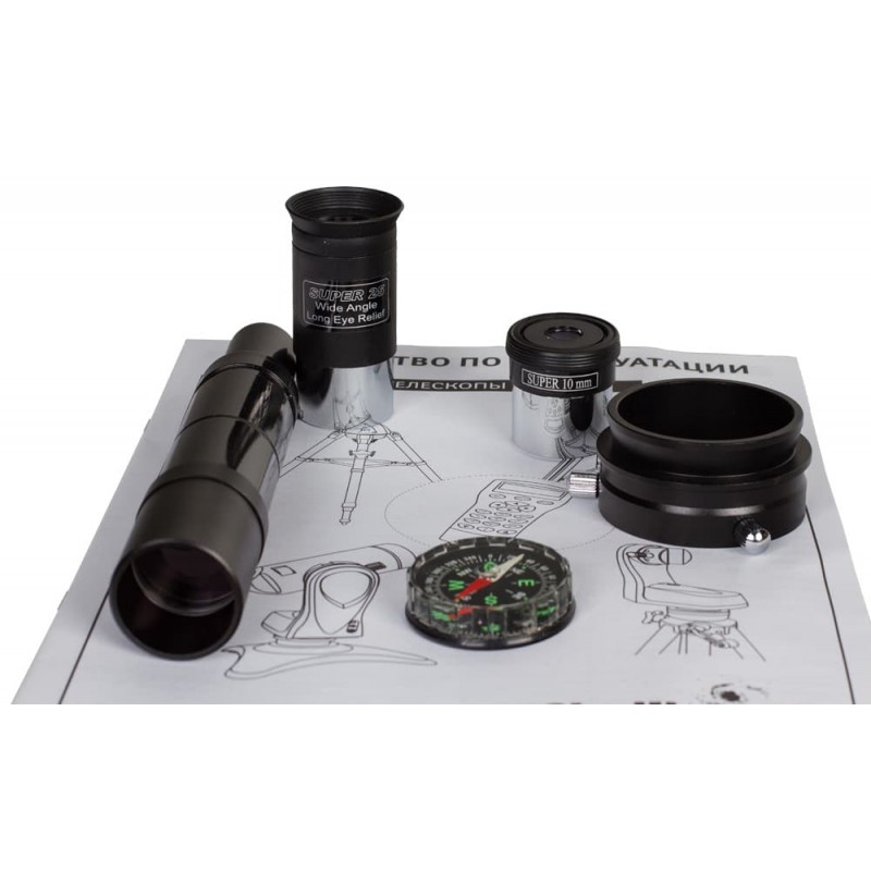 В комплекте идут стандартные окуляры 10мм и 25мм, которые дают увеличение в 65х и 26х. Чтобы выжать максимум, нужно будет докупить линзу Барлоу и дополнительные качественные окуляры.