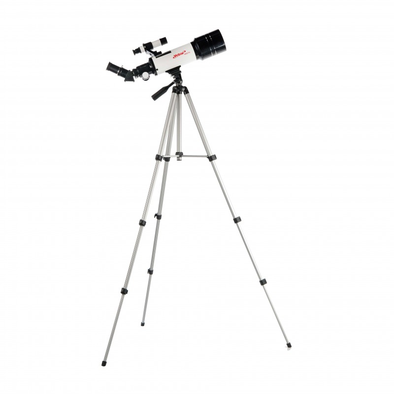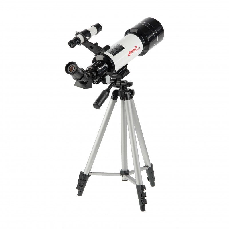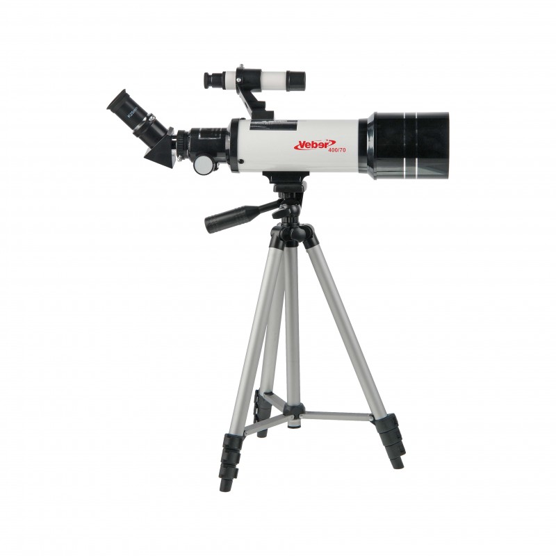 Veber 400/70 – простой и надежный линзовый телескоп-рефрактор для начинающих любителей астрономии, как детей, так и взрослых. Справиться с этой моделью сможет любой: достаточно установить трубу на алюминиевую треногу – и прибор готов к работе. Уход за телескопом сводится к протиранию объектива и окуляра специальной салфеткой. Главное аккуратно обращаться с прибором, и он прослужит долгие годы (на него распространяется пожизненная гарантия).
