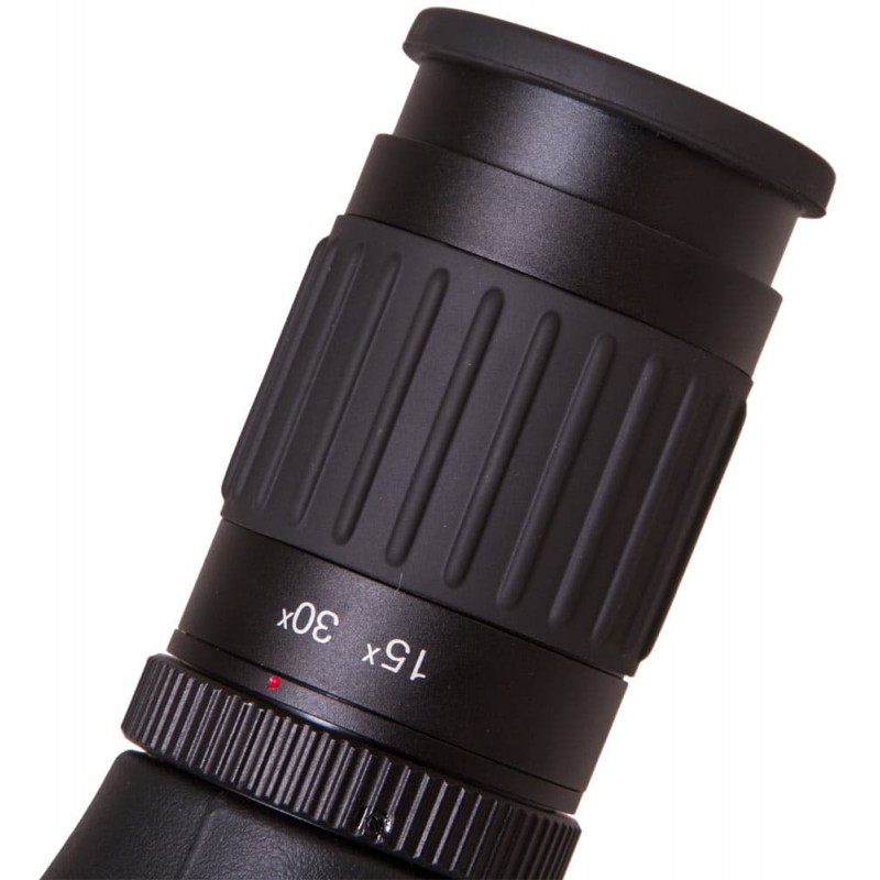 Эта зрительная труба панкратическая – это значит, что есть возможность плавной смены увеличения прямо во время наблюдений. С помощью трубы можно получить увеличение в диапазоне 15-45х. Это позволяет, например, навестись на объект при малом увеличении (с большим полем зрения), а потом повысить кратность для того, чтобы рассмотреть мелкие детали.