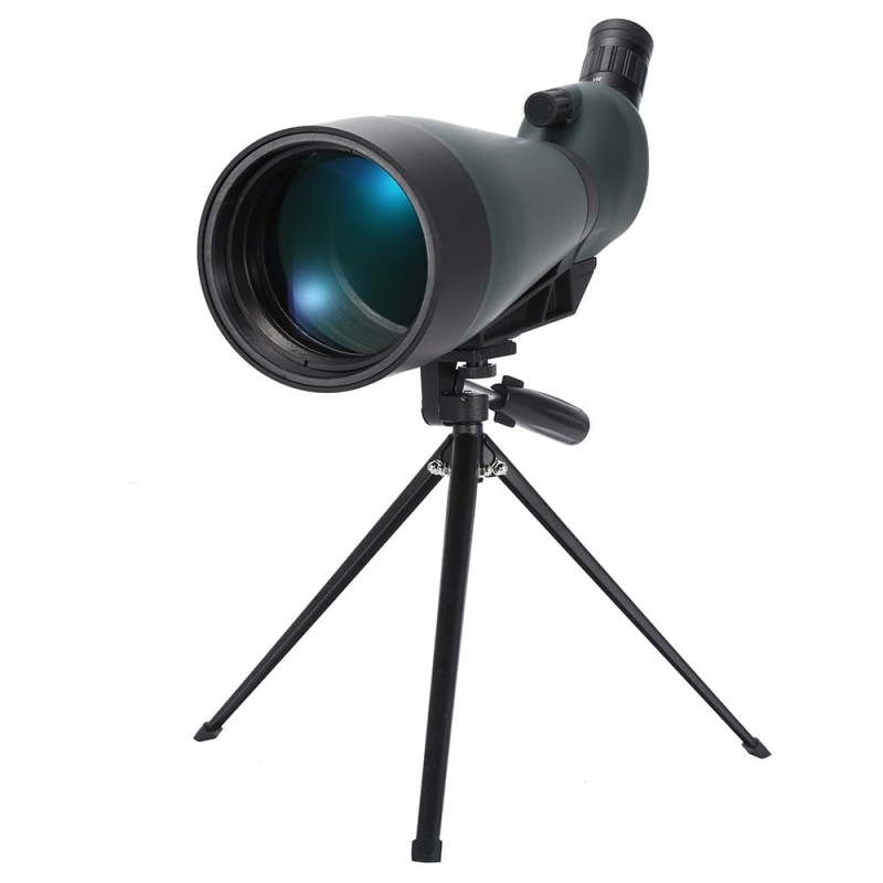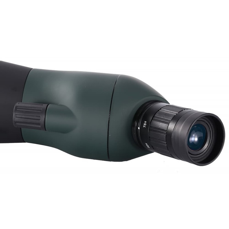 Корпус зрительной трубы сделан из пластика. В конструкции предусмотрено стандартное штативное крепление 1/4 дюйма. В комплект поставки включен небольшой настольный штатив и жесткий кейс для транспортировки и хранения оптического прибора.